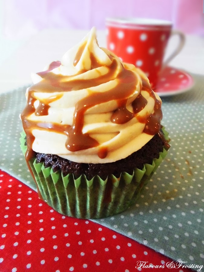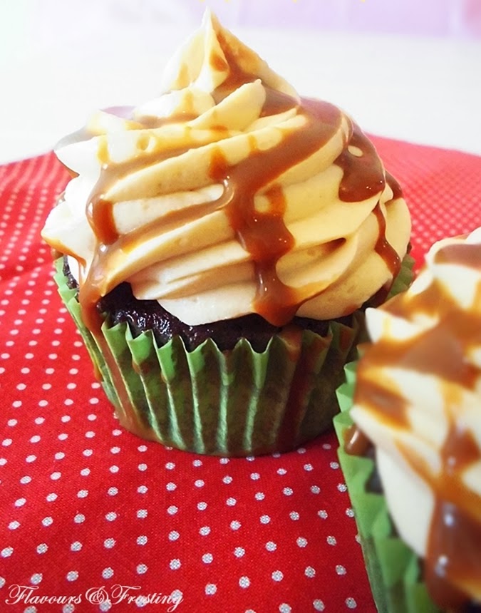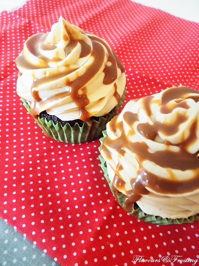 Por supuesto estas bellezas estaban cubiertas con un delicioso frosting de dulce de leche y para super segura que sabía como el dulce de leche, las rocié con un poco en la parte superior del frosting también 😉 Yo sabía que mi tarta de plátano estaba lleno de sabor a plátano así que necesitaba asegurarme de que no abrumase al dulce de leche, sino que la complementara ..