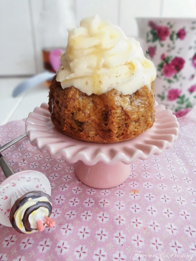 After I made the Honey Rum Cupcakes, I had left-over frosting and decided to freeze it. This was the 1st time I used leftover frosting after freezing it and I must say it worked better than I thought it would. I defrosted it in my microwave at 20% power for 1 minute and then beated it on high in my stand mixer.. I realised the taste of the honey rum was stronger (somehow the freezing process made the alcohol more potent) so I added more icing sugar and it worked out perfectly 🙂
