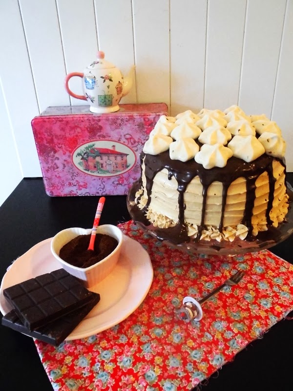Si te gusta el chocolate junto con el café esta tarta es para ti.. es una tarta de chocolate llena de ganache de chocolate negro y cubierta con frosting de café ..Hace un tiempo, unos amigos nos dieron café Starbucks como regalo, así que decidí usar algo de lo que quedaba para hacer el frosting .. el resultado fue aún mejor de lo que yo pensé .. si te gusta el café Starbucks tanto como me gusta (y créanme que donde vivimos es difícil de encontrarlo..) te va a encantar, pero por favor no pienses que no puedes usar cualquier otro café, porque es posible. . Simplemente me gusta Starbucks así que lo usé pero se puede usar de la marca que quieras ..)