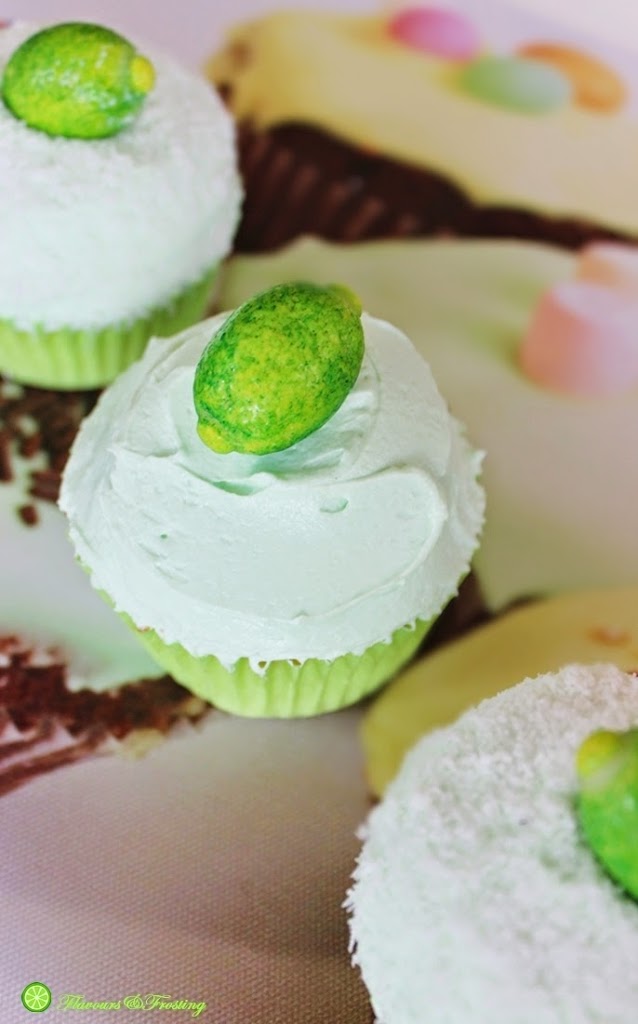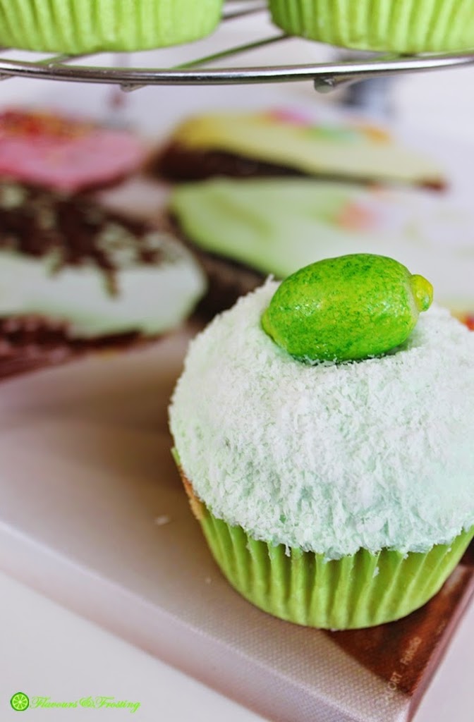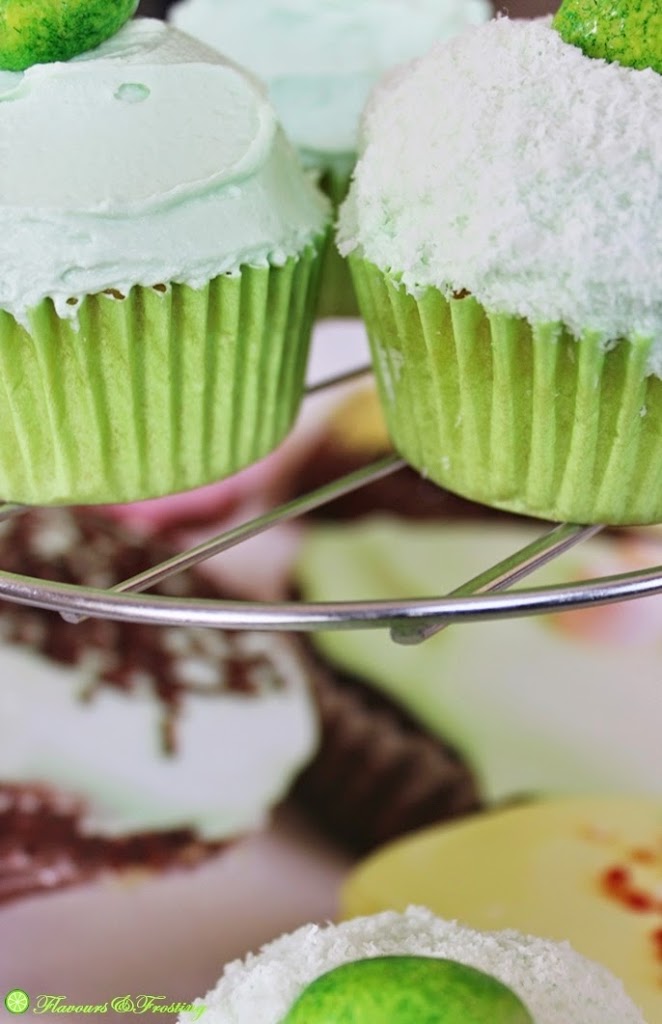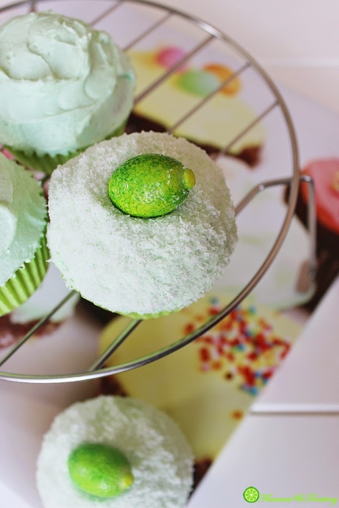 Las pequeñas limas lindas de la parte superior de los cupackes fueron tan fácil de hacer .. He encontrado algunos dulces que se parecían a los limones en Spar y decidí usar mi colorante gel verde (mezclado con un poco de zumo de limón) para pintarlos de verde ..apenas nada, pero tan liiiiiiiiindas 🙂