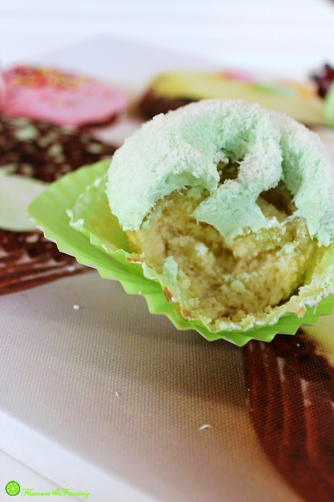 This recipe has a twist and started with an idea.. I wanted to get not only both flavours of coconut and lime into the topping (frosting) but also into the batter.. So I made a basic cake batter and divided it into 2/3 for the coconut and the other 1/3 for the lime flavour.. this way you have both flavours in the batter but seperate but also together.. if that makes sense….. 😉