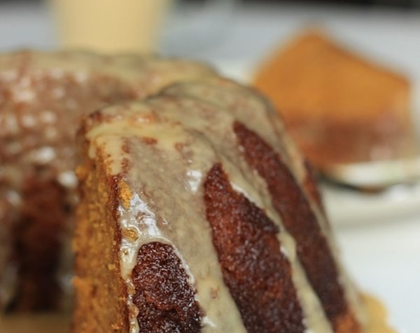 This Bundt Cake Recipe is made with pumpkin puree, pumpkin spice and topped with an easy maple glaze made with only 3 ingredients! Oh and I used olive oil and the result was amazing!