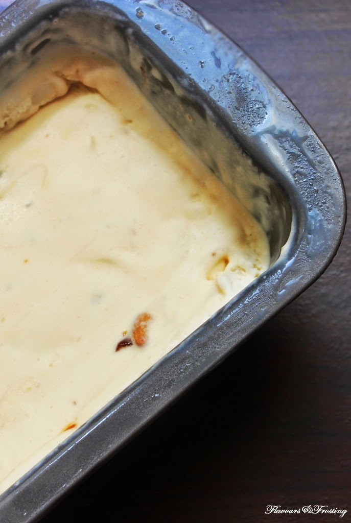 Whip your cold cream until it forms stiff peaks, fold the tin of cooled condensed milk to the whipped cream by using a spatula. Add the chopped pieces of peanut brittle, pour into a container and freeze for a minimum of 6 hours. You don´t need to whisk the mixture during the freezing process because condensed milk is a magic ingredient when making no-churn ice cream.. the end result will be creamy, smooth and not at all icy 🙂