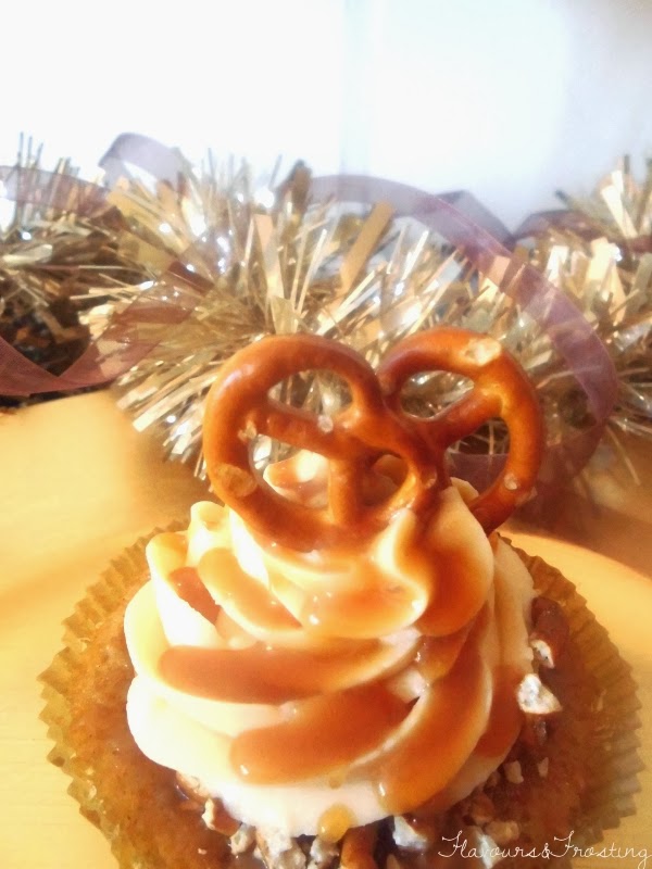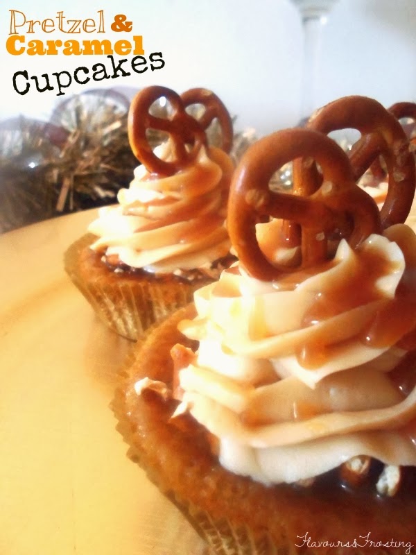 A pesar de que las fiestas han terminado, no significa que no podemos seguir celebrando .. La Vida .. Estoy segura de que tenemos algunas cosas que celebrar!! Así que decidí continuar con las celebraciones por mi parte con estos deliciosos y salados cupcakes de pretzel y caramelo 🙂 Estos cupcakes son deliciosos, el sabor salado del pretzel se incorpora al fuerte dulzor del caramelo, el cual dejó un sabor perfecto en la boca .. sin ser demasiado ..