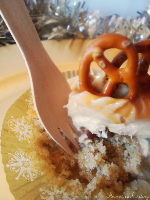 Even though the festivities have ended it doesn´t mean we can´t continue to celebrate.. for example life.. We always have reasons to celebrate!! So I decided to continue the celebrations on my side with these delicious Salted Pretzel & Caramel cupcakes 🙂 These cupcakes were delicious, the saltiness of the pretzel broke through the sharp sweetness of the caramel and left just the perfect taste sensation in my mouth.. nothing too overbearing..