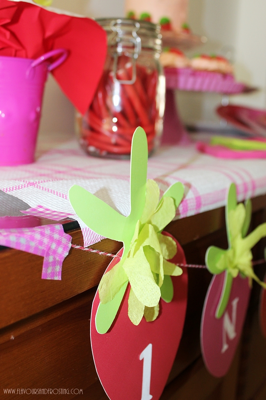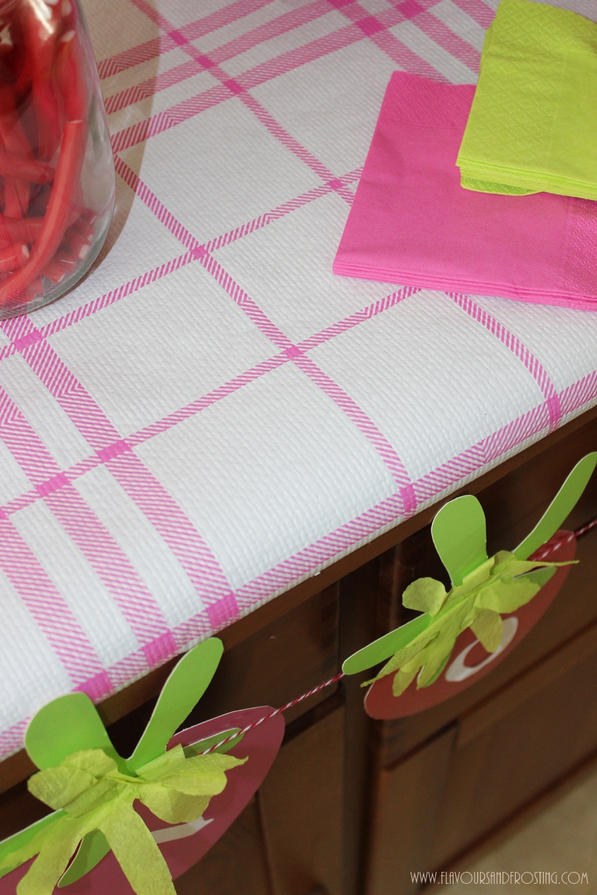- A big Strawberry Banner with the birthday girls name which I hung at the front of the display.